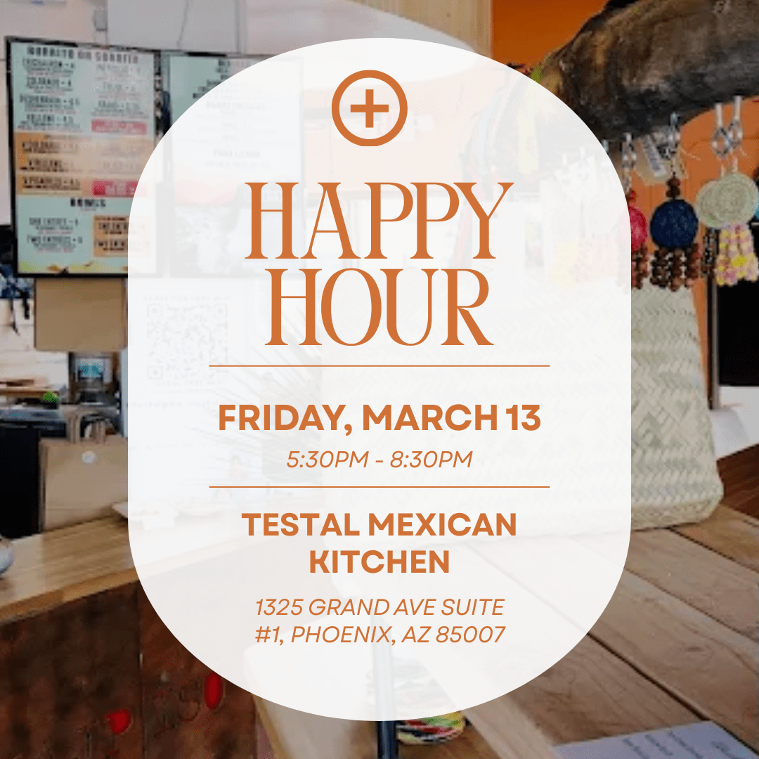 Phoenix Happy Hour at Testal Mexican Kitchen. Network, connect and attend to win $100 off or 3 months free flex membership.